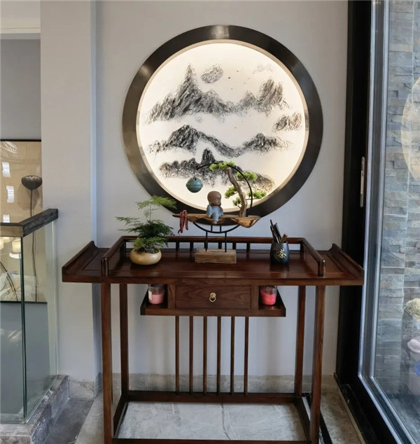 。除了保留中式的韻味外,還加了大理石、燈帶等材料,使空間包含現代生活氣息。新中式風格是一種既繼承了中國古典園林的基本元素及造園手法,又融合了現代簡約的幾何圖案及線條的設計風格